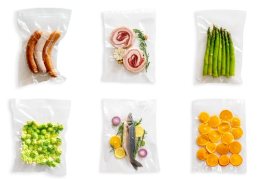 Świeże mięso, wędliny, przyprawy, produkty drobiarskie, ryby, sery niedojrzewające, produkty sypkie, orzechy, biżuteria i kosztowności, tworzywa sztuczne, elementy metalowe, dokumenty. Worki są jednostronnie moletowane. Jedna warstwa moletowania jest niezbędna do właściwego i szybkiego usunięcia powietrza. Warstwa gładka pozwala na estetyczną wizualizację spakowanego produktu. Worki jednostronnie moletowane są kompatybilne z większością nowoczesnych pakowarek listwowych dostępnych na rynku.