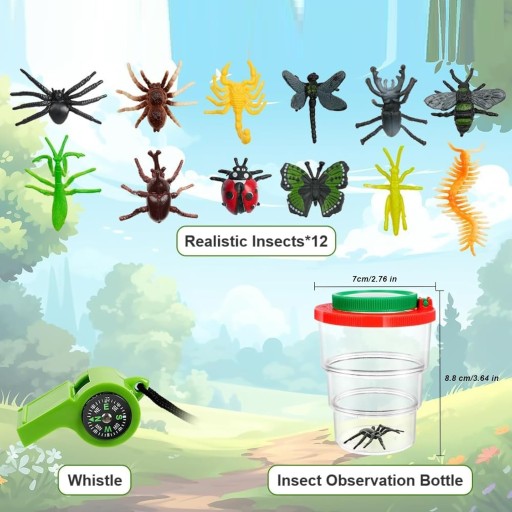 ⭐️Wbudowana lupa: Pudełko wyposażone jest w lupę, która umożliwia dzieciom dokładniejsze obserwowanie złapanych owadów, co wzbogaca doświadczenie i naukę.