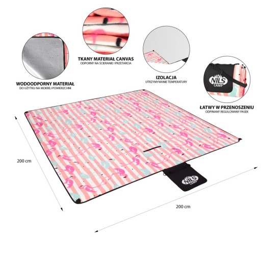 Koc Piknikowy Plażowy Nils Camp NC2313 Flamingi 200 x 200 cm PE+ALU