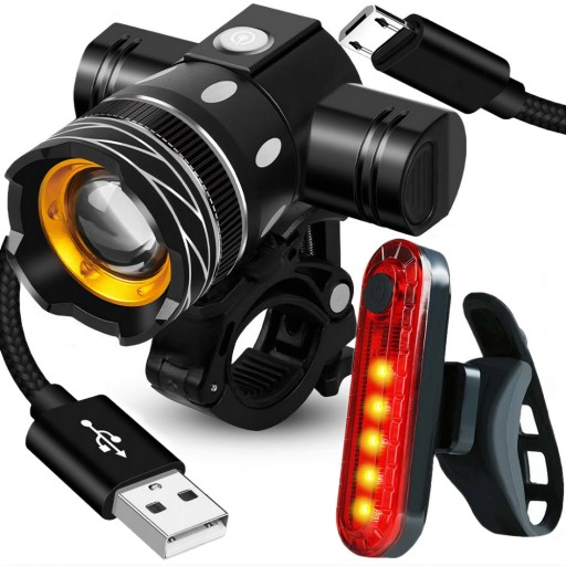 LAMPKA ROWEROWA ŚWIATŁO PRZÓD TYŁ LED NA ROWER KIEROWNICĘ MOCNA USB JASNA