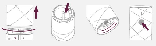 1. Odkręć pojemnik na proszek; 2. Wsyp pieprz; 3. Wybierz stopień zmielenia; 4. Uruchomiony.