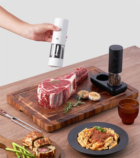 Oryginalny zestaw 2 elektrycznych młynków do pieprzu HUOHOU 300mAh!