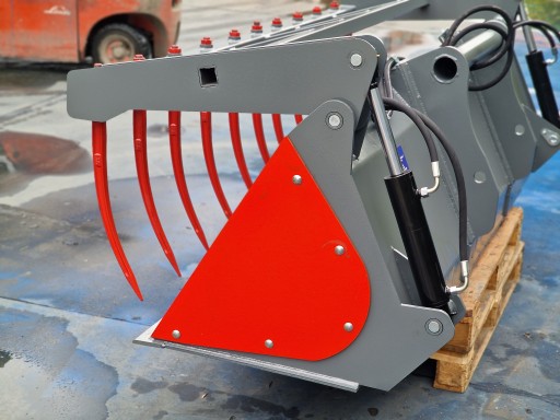 Siłowniki hydrauliczne ustawione pionowo, które znajdują się z tyłu łyżki ułatwiają pracę. Zwiększają widoczność chwytanego materiału przez co ułatwiają pracę i widoczność operatora.