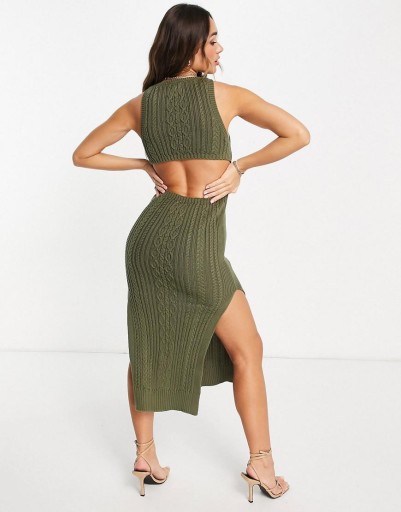 ЗЕЛЕНОЕ ПЛАТЬЕ ХАКИ F0C208 С ВЫРЕЗОМ НА СПИНЕ ASOS 46