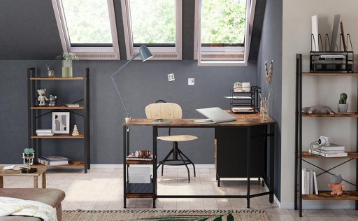 Wyposażone w dwie boczne półki (środkową można zdemontować i zyskać miejsce na komputer) oraz szafkę na dokumenty.