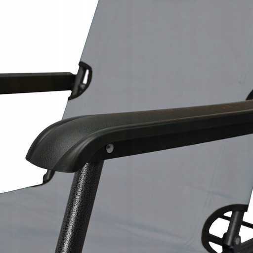 - Pozycję można zablokować w pozycji leżącej i siedzącej przy pomocy blokad znajdujących się po obu stronach pod podłokietnikami.