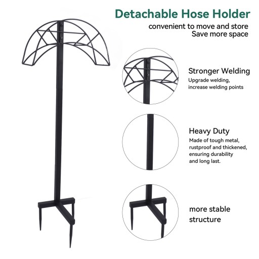 3. Wolnostojący i stabilny: posiada 3 punkty kotwiczenia, które zapewniają doskonałe wsparcie i zapewniają stabilną pozycję uchwytu węża. Można go również umieścić w dowolnym miejscu i utrzymać wąż w porządku.