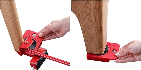 Unieść krawędź, narożnik mebla za pomocą dźwigni, wsunąć płytkę z rolką i opuścić ładunek. Podobnie postąpić z pozostałymi rolkami.