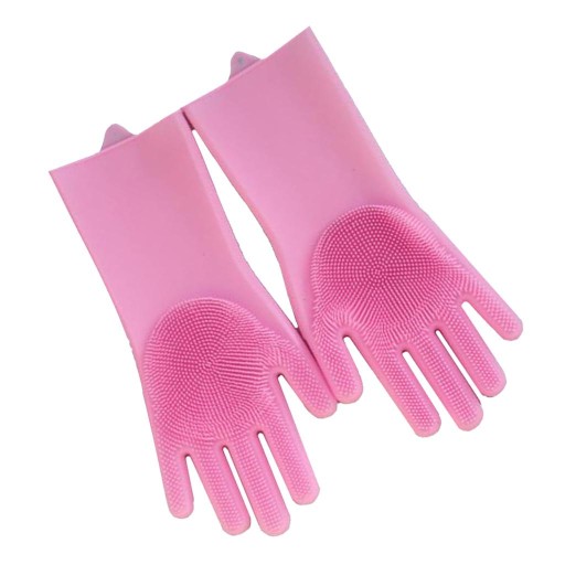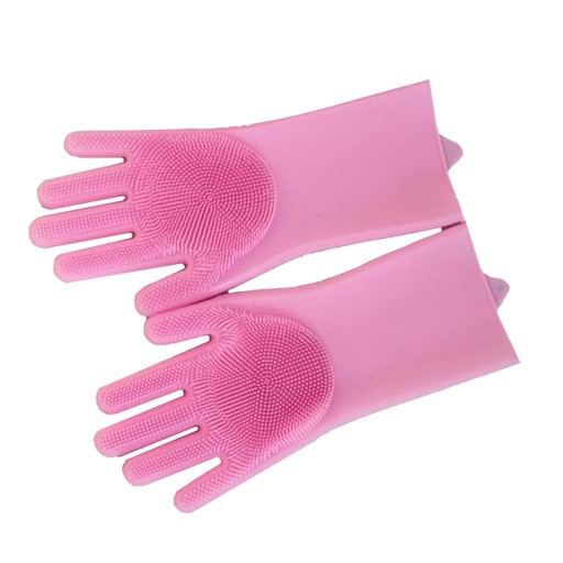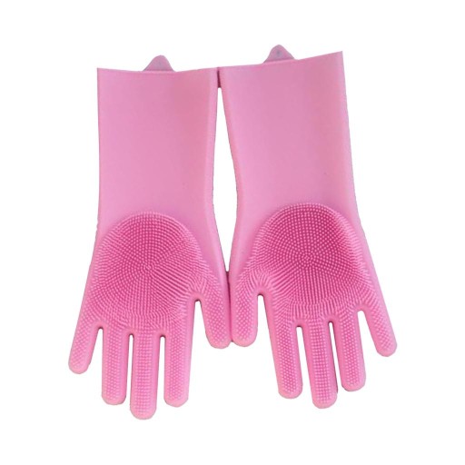 Rękawice do mycia naczyń z gumy silikonowej Szczotka do szorowania różowa