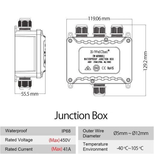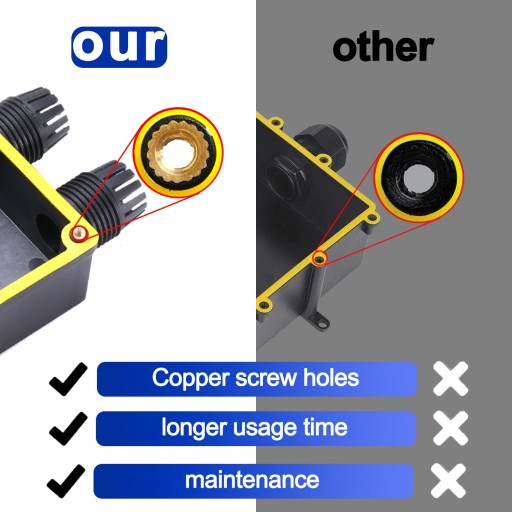 ②Wysoka jakość: puszka rozgałęźna – sprawdzona i posiada profesjonalną wodoodporną konstrukcję i wzmocnioną osłonę. Do kabli ziemnych (do Ø 12 mm).