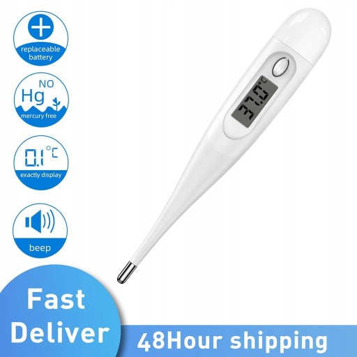 : Ten wykorzystuje precyzyjną technologię termistorową, dokładność pomiaru wynosi ± 0,1 ℃ Plastikowe , bezpieczne użytkowanie, środowiska, może być używane do ustnej, doodbytniczej i pachowej Czytelny, cyfrowy wyświetlacz LCD idealny do użytku domowego Higieniczna i łatwa w czyszczeniu, wodoodporna końcówka umożliwia łatwe i higieniczne czyszczenie termometru Zakres pomiarowy wynosi 32-42,9 ℃, 1 sekundowy natychmiastowy odczyt pomiaru temperatury, alarm będzie szybszy niż normalnie, gdy masz gorączkę