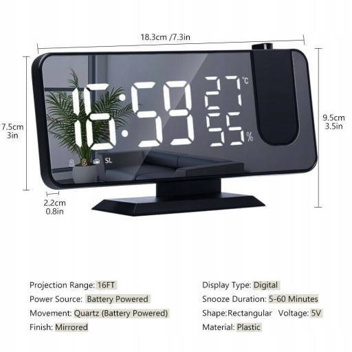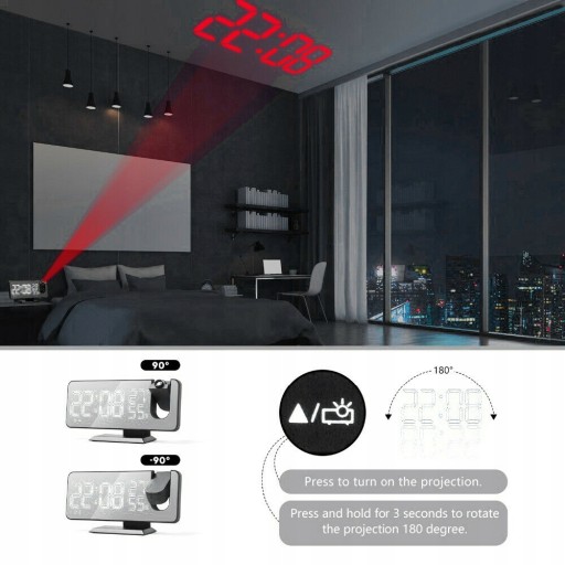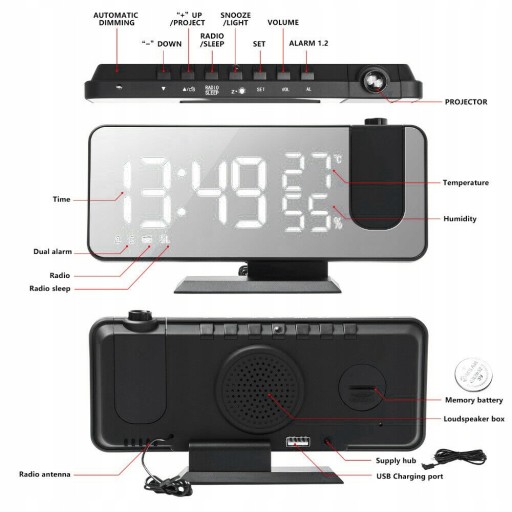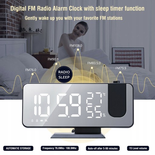 Funkcja podwójnego budzika: 2 budziki można ustawić osobno na dowolny czas, a także ustawić tryb drzemki.