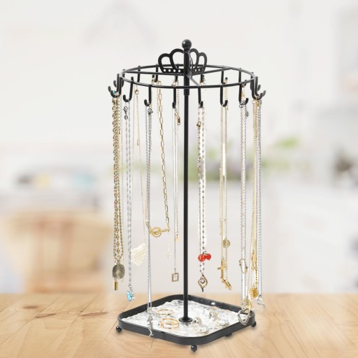 Obrotowy stojak na biżuterię na naszyjnik pierścionek pokaż biżuterię czarną