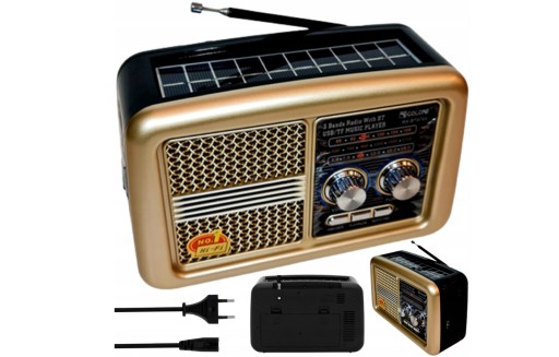 Przenośne radio w stylu retro z wbudowanym panelem solarnym do ładowania.
