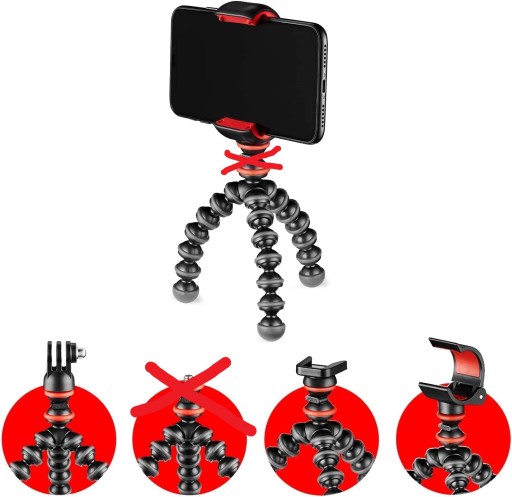 - Zestaw startowy GorillaPod zawiera uniwersalny zacisk do smartfona, uchwyt GoPro, uchwyt na latarkę, uchwyt na kamerę szybkiego zwalniania i standardowy uchwyt na kamerę 1/4"-20