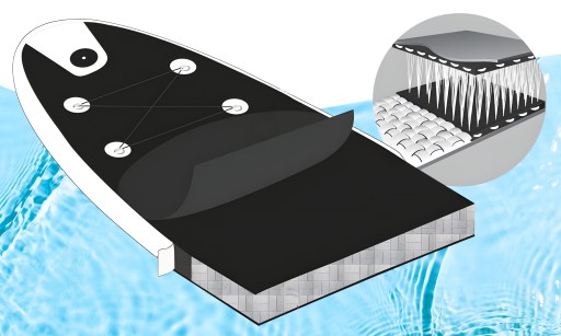 Centralny punkt deski stanowi specjalna pianka, która zabezpiecza przed ślizganiem się po mokrej powierzchni deski,