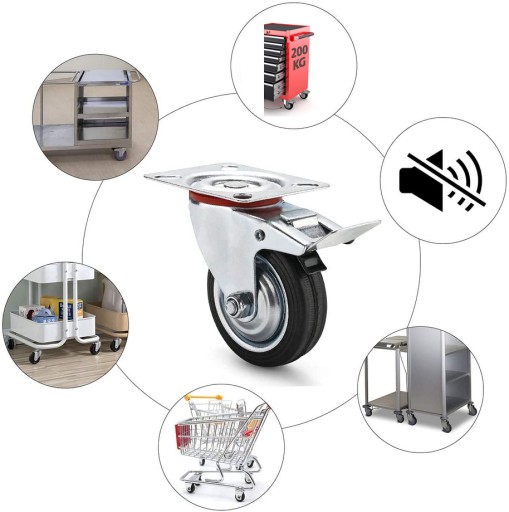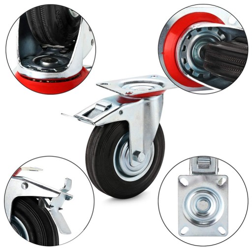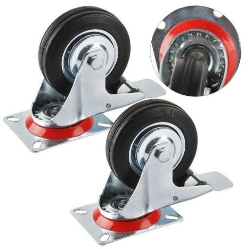 КОЛЕСО ПОВОРОТНОЕ РЕЗИНОВОЕ РУЛЕВОЕ МЕТАЛЛ КОЛЕСО 125ММ С ТОРМОЗОМ 2 ШТ.
