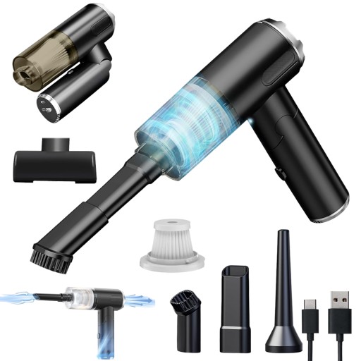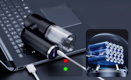 wyposażony w cyfrowy, szybki silnik, odkurzacz ręczny ma moc ssania 8000 Pa i łatwo usuwa kurz, sierść zwierząt i resztki jedzenia. Po naładowaniu trwa tylko niecałe 2 godziny (czerwone światło oznacza naładowanie, zielone światło oznacza pełne naładowanie) i może działać przez 15 minut (czas pracy może się różnić w zależności od wsadu czyszczenia). W zestawie znajduje się kabel ładujący USB-C, który umożliwia ładowanie odkurzacza z gniazda USB w dowolnym miejscu w samochodzie lub w domu.