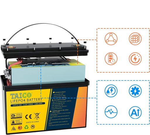 БАТАРЕЯ 12 В, 100 Ач, литиевая батарея BMS LiFePO4 TAICO для кемпинга на лодке