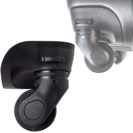 Zestaw składa się z obudowy kółka (który montujemy do korpusu walizki) oraz kółka kauczukowego.