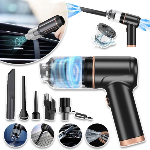 Ten ręczny odkurzacz jest bezprzewodowy i łatwy w przechowywaniu, co zapewnia większą wygodę podczas sprzątania. Przenośny odkurzacz do wnętrza samochodu, czyści kurz, okruszki, sierść zwierząt z dywanów, kuchni, salonu i biur z wyjątkową wydajnością.