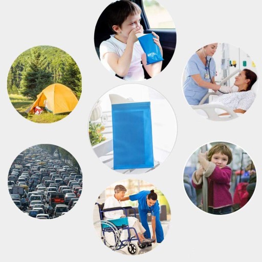 Duża pojemność i łatwość użycia: worek na mocz może być używany przez ok. 2 godz. 600 ml. W normalnych warunkach wydalanie moczu u ludzi wynosi od 300 ml do 600 ml. 12 worków ratunkowych, 12 niebieskich worków na śmieci, 1 worek łonowy. Duży worek na śmieci służy do delikatnego obchodzenia się z woreczkiem po oddaniu moczu.