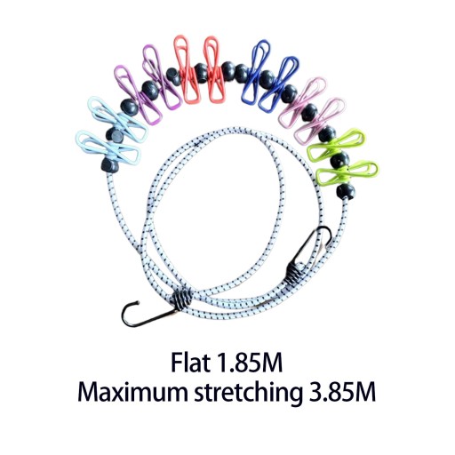 [Wysokiej jakości materiał]: wykonany z wielopasmowej elastycznej gumki o dobrej wytrzymałości na rozciąganie i trwałości; można go rozciągnąć do 12,63 stopy i jest wystarczająco mocny i długi, aby pomieścić wiele ubrań. Przenośny sznur do bielizny idealny do podróży, kempingu, prania, hotelu, łodzi, balkonu, podwórka, suszenia ubrań na zewnątrz i wewnątrz.