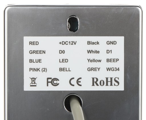 - Komunikacja: RFID - Wiegand 26bit, Klawiatura - Wiegand 4bit