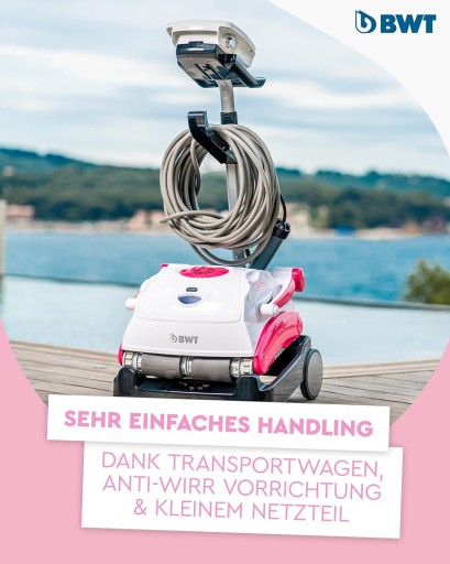 ŁATWY W UŻYCIU Dzięki aplikacji: Łatwe sterowanie programem czyszczenia robota odkurzającego za pomocą bezpłatnej aplikacji na smartfony za jednym naciśnięciem przycisku. 4D-FILTERTECHNOLOGIA: Der spezielle Filtereinsatz dieser Technologia gepaart mit zusätzlichen Vibrationen filtert jede Verunreinigung vom kleinen Sandkorn bis hin zum Laubblatt aus Ihrem Wasser. SMART NAVIGACJA: inteligentny system sterowania tego robota basenowego indywidualnie oblicza optymalną trasę dla każdego basenu - umożliwiając szybkie i skuteczne czyszczenie basenu. DOSKONAŁA WYDAJNOŚĆ SPIRACJI: dzięki regulowanym dyszom, które dostosowują się do rodzaju odkurzanego brudu, roboty ssące BWT przekonują swoją doskonałą wydajnością ssania. ŁATWA KONSERWACJA basenu : Niezależnie od tego, czy jest to basen ze stali nierdzewnej, betonu, płytek czy podszewki, robot basenowy D300 niezawodnie czyści dno, ściany i linie wody basenowe o długości do 12 m w ciągu 2,5 godziny.