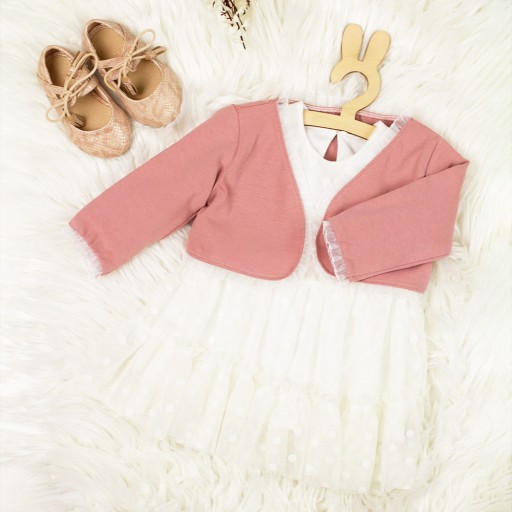 Bolerko Wiktoria to doskonały wybór na chrzest jak i inne ważne uroczystości. Bolerko wykonane jest z bawełny i ozdobione delikatną tiulową falbanką. Świetnie sprawdzi się do sukienek zarówno tych z krótkim jak i długim rękawem. Bolerko w kolorze białym jest na tyle uniwersalny produktem, że dopasujesz go do koloru każdej stylizacji. Bolerko Wiktoria świetnie podkreśli sukienkę w kolorze różowym.