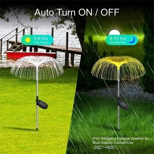 Elegancki i niepowtarzalny design: Ta solarna lampa uliczna do trawnika została zaprojektowana w kształcie meduzy. Gdy światła uliczne są „włączone” w nocy, 7 kolorów zmieni się automatycznie. Projektuje piękne wzory do dekoracji trawnika lub chodnika, ogrodu, patio, drzew, kwiatów, kwietnika, ogrodzenia, trawnika, ścieżki, kempingu, oczka wodnego, lampy krajobrazowej.