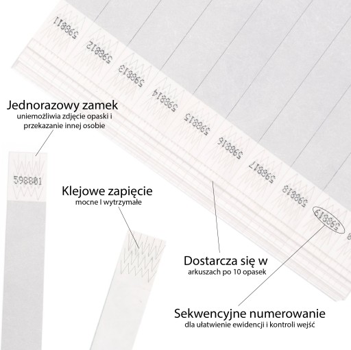 - Zamknięcie na klej zabezpieczające przed ponownym założeniem dzięki fragmentowi z nacięciami.