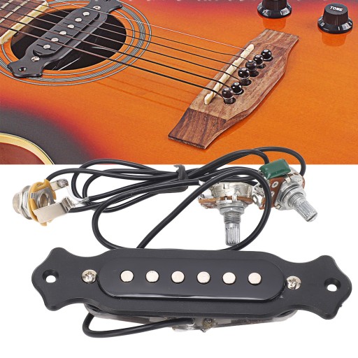 Zestaw przetworników z otworem rezonansowym do gitary, wstępnie okablowany, 6 strun z regulacją głośności do gitar akustycznych