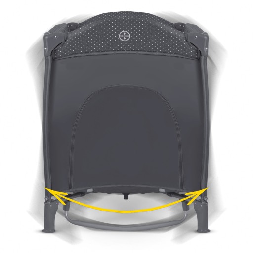 Rozporowa konstrukcja pozwala łatwo rozłożyć łóżeczko do docelowego kształtu i ustabilizować je na sztywno w tej pozycji.