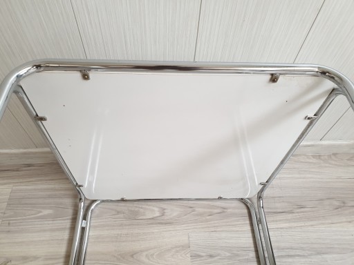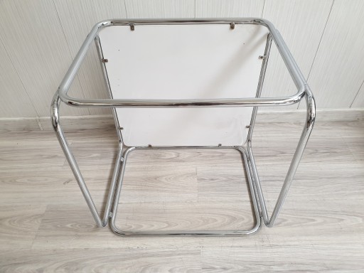 stolik w stylu BAUHAUS dobre wykonanie. stan bardzo dobry minus nieduże ślady użytkowania - stelaż stal niklowana, blat płyta plus okleina.