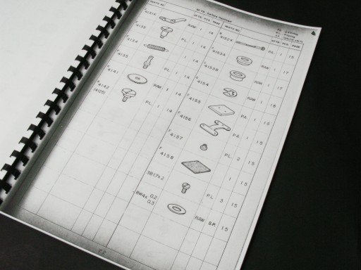 42 strony A4 - w tym 17 plansz rysunków technicznych A4 części "Exploded Views" i mega szczegółowa część "Parts List" nie tylko spis, ale też rysunki części z przypinanymi numerami.