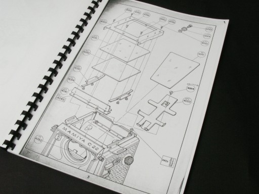 Reprint oryginalnego wydawnictwa Mamiya Camera CO., LTD. Tokyo, Japan przeznaczonego dla markowych foto-serwisów Mamiya.