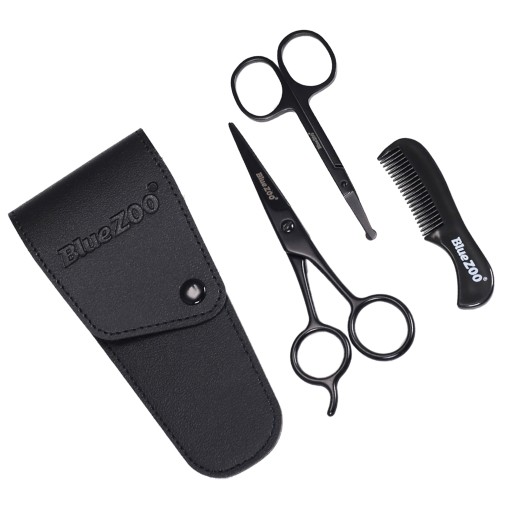 Zestaw nożyczek i grzebieni do wąsów i brody dla mężczyzn i kobiet z czarną torbą