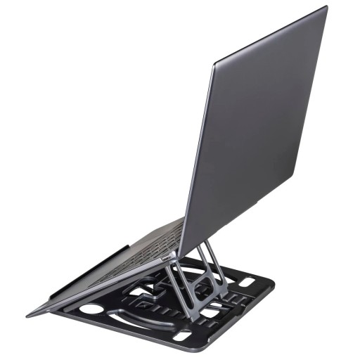 - Łatwa w transporcie podstawka pod laptopa z funkcją obrotu o 360° i regulowanym kątem nachylenia, zapewniająca wygodne korzystanie z notebooka na stole lub w miejscu pracy