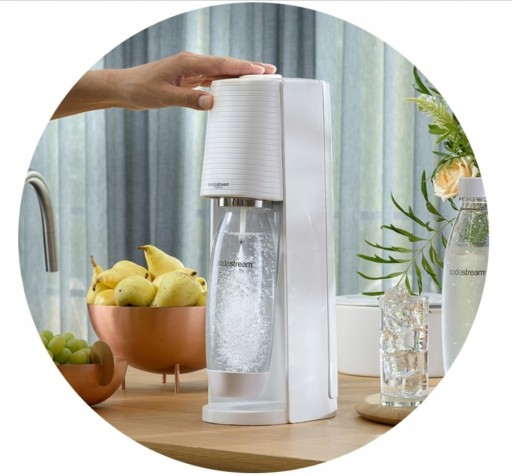 Ekspres SodaStream Terra biały 3 butelki Zacznij eko rewolucję w swojej kuchni! Czy wiesz, że do wytworzenia 1l butelki z wodą gazowaną trzeba zużyć aż 3l wody? Powiedz stop jednorazowemu plastikowi! Dołącz do SodaStream i zmień sposób w jaki pijesz wodę gazowaną Wybierz ekspres SodaStream TERRA zawsze, gdy masz ocę na bąbelkowe orzeźwienie Po prostu naciśnij przycisk i działaj! Ekspres SodaStream Terra biały 3 butelki to łatwy w obsłudze i niezwykle elegancki ekspres do gazowania wody, dzięki któremu w zaledwie kilka sekund zmienisz zwykłą wodę w pyszny bąbelkowy napój o wybranym poziomie nagazowania Postaw na bycie eko Postaw na SodaStream! Wyeliminuj nawet 1769 butelek plastikowych Zostań Streamerem i przyczyń się do eliminacji do 78 miliardów plastikowych butelek jednorazowego użytku do 2025 roku Do dzieła! Bąbelkowanie w 3 prostych krokach Dobierz ilość bąbelków do swojego gustu! Bąbelkowanie w 3 prostych krokach: 1 Nalej schłodzoną wodę do butelki SodaStream nieprzekraczając poziomu wyznaczonego przez linię na butelce 2 Zamocuj butelkę w saturatorze, a po usłyszeniu kliknięcia, dociśnij lekko butelkę w stronę ekspresu Butelka powinna znaleźć się w pozycji pionowej 3 Naciśnij przycisk, znajdujący się na górze ekspresu, aby rozpocząć bąbelkowanie Masz dzisiaj ocę na mocny gaz, a Twoi goście wolą lekki? Dzięki ekspresowi SodaStream Terra białemu 3 butelki nie musisz iść na kompromisy Ilość gazu możesz dostosować do swoich preferencji 1-2 naciśnięcia – woda lekko gazowana, 3-4 naciśnięcia – woda średnio gazowana, 5 naciśnięć – woda mocno gazowana Bąbelki mają same plusy Zdrowie: Czy wiesz, że bąbelki uatrakcyjniają smak wody, przez co pije się jej więcej? Zadbaj o nawodnienie organizmu, które korzystnie wpływa na Twoje zdrowie i samopoczucie Wygoda: Skończ z dźwiganiem ciężkich zgrzewek ze u Ekspres SodaStream Terra biały 3 butelki jest zawsze w Twojej kuchni, dzięki czemu możesz stworzyć wodę gazowaną zawsze gdy masz na nią ocę, w zaledwie kilka sekund W trosce o planetę: Pomyśl o przyszłości naszej planety i zacznij być eko już dzisiaj Wybierz wielorazowe butelki SodaStream Fuse i rozpocznij bąbelkową rewolucję w swoim domu Nasza bąbelkowa bohaterka! Niezwykle trwała butelka 1l wykonana z tritanu bez BPA Nie matowi się i jest odporna na zarysowania Jej pojemność i minimalistyczny design pozwolą rozkoszować się bąbelkami przez długi czas, a do tego można umyć ją w zmywarce! Decydując się na zestaw nie ma konieczności dokupywania butelki Ekspres SodaStream Terra biały zawiera 3 butelki