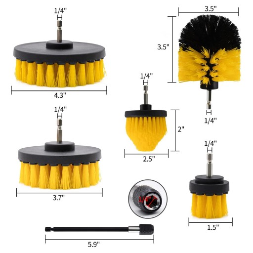 - Są kompatybilne z prawie wszystkimi bezprzewodowymi nasadkami szczotek szorujących z sześciokątnym gniazdem 1/4 cala. Wystarczy włożyć nasadkę szczotkową do wiertarki i dokręcić ją.