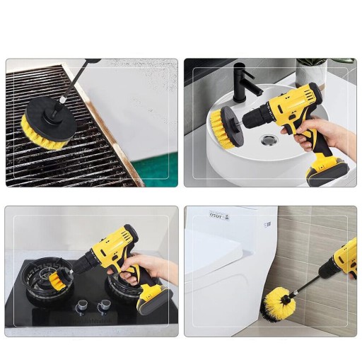 - Można używać w różnych sytuacjach, a nasadka ze szczotką do śrubokręta bezprzewodowego może usuwać plamy z wielu miejsc, takich jak wanny, zlewy, zlewozmywaki, ściany kuchni, płytki, podłogi, dywany w salonie i koła samochodu .