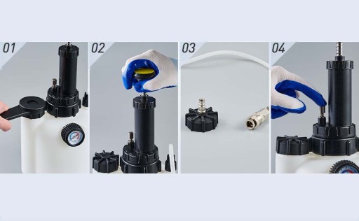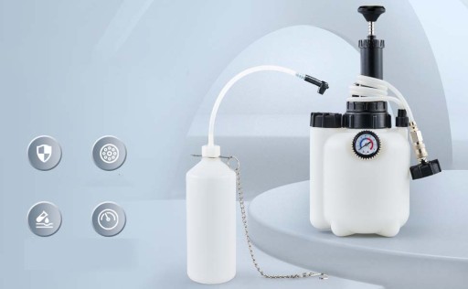 - - Może pomieścić 3 litry oleju hydraulicznego i przepłukać cały układ w jednej operacji.