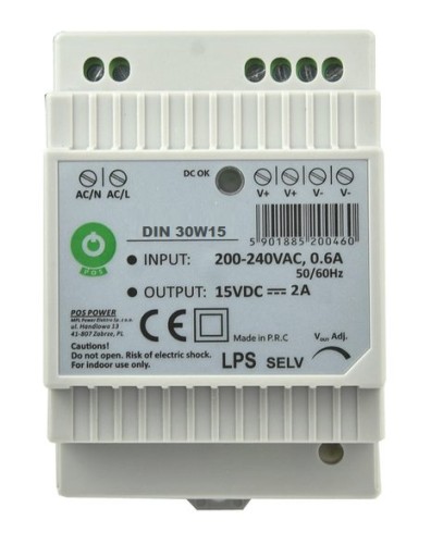 napięcie zasilacza (wyjście) 12V-16V, natężenie znamionowe prądu 2.0A przy 15V, moc 30W