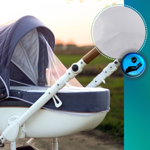 Moskitiera jest łatwa w montażu – wystarczy ją nałożyć na wózek, a elastyczne krawędzie zapewnią stabilne przyleganie.