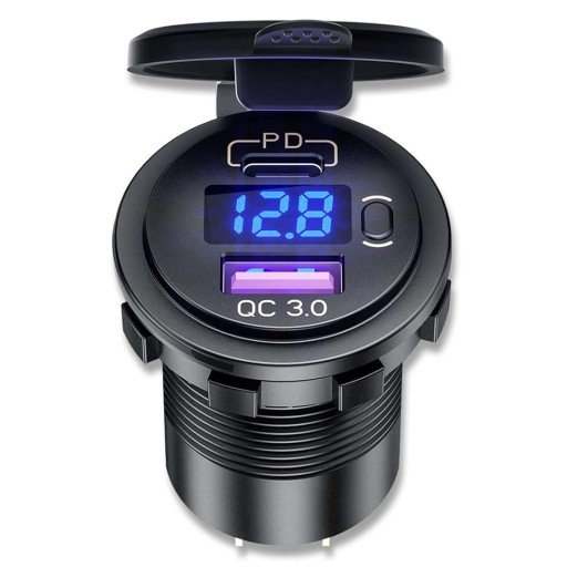 ▶️ Ładowarka samochodowa USB QC 3.0 + USB-C type-C PD adapter gniazdo zapalniczki samochodu Woltomierz LED 48W szybka do telefonu czarna