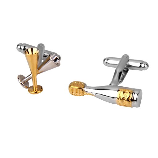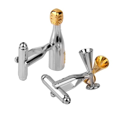 Spinki do mankietów z butelką szampana Wymiary: ok. 17 mm x 16,5 mm / 0,67 x 0,65 cala