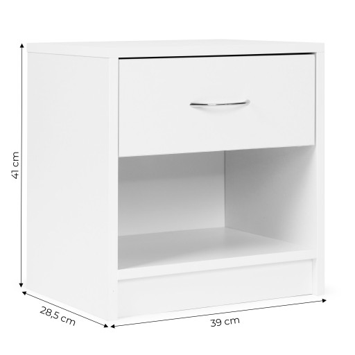 Szafka idealnie sprawdzi się jako mebel do sypialni, ustawiając ją blisko łóżka zyskasz miejsce, na którym odłożysz ulubioną książkę, telefon, budzik a nawet małą roślinę Dzięki swojemu uniwersalnemu designowi, szafka sprawdzi się również w przedpokoju a nawet w salonie jako mały i funkcjonalny dodatek.
