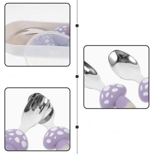 ✅Zestaw widelców z łyżką i krótkim uchwytem dla malucha to idealny wybór dla Twojego malucha. Wykonane z bezpiecznych materiałów, nadają się do różnych rodzajów żywności. Kształt grzybka przyciągnie uwagę dziecka i zachęci do samodzielnego jedzenia. Krótka rączka jest idealna dla małych rączek do łatwego trzymania i używania.