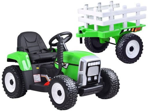 Fantastyczny traktor z przyczepądla każdego małego kierowcy zapewni mnóstwo wesołej zabawy. Traktor z efektami dźwiękowymi i świetlnymi, panelem muzycznym będzie pasował do każdego gospodarstwa. Traktor posiada komfortowy fotel obszyty ekoskórą, lewarek do zmiany biegów, oraz kierunku jazdy, włącznik do świateł. Wolny start w pojeździe zapewni komfortowe ruszanie maszyną. Dwa mocne silniki i akumulatory zapewnią dotarcie w każde miejsce.